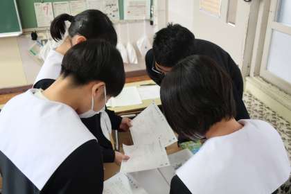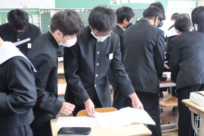 1/28 3-2 間違えやすい問題の特徴 4 公開日 2025/01/28 更新日 2025/01/28 各学年から 3年2組の社会の授業の様子です。 入試対策のプリントに取り組み、間違えやすい問題の特徴とその解き方のテクニックを解説されていました。