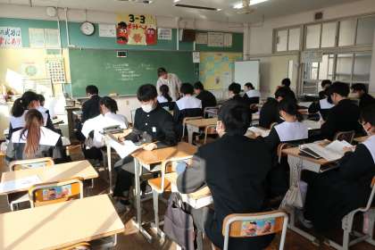 入試対策のプリントに取り組み、間違えやすい問題の特徴とその解き方のテクニックについて解説されていました。