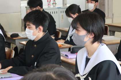 1/29 3-3 間違えやすい問題の特徴 3 公開日 2025/01/29 更新日 2025/01/29 各学年から 3年3組の社会の授業の様子です。 入試対策のプリントに取り組み、間違えやすい問題の特徴とその解き方のテクニックについて解説されていました。