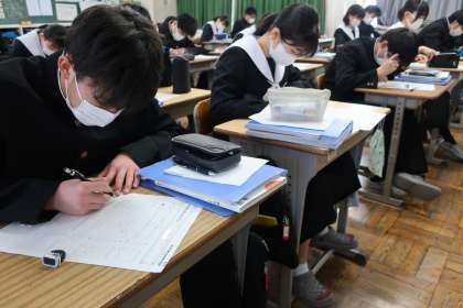 入試対策と3年間の総復習を兼ねて、3年間のまとめのテストに取り組んでいました。