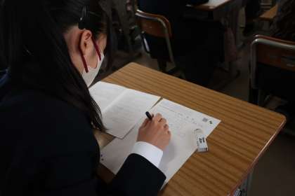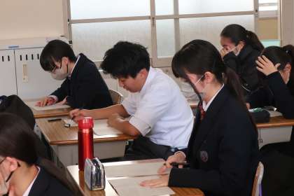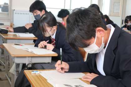 学習診断テストに向け、本番と同じ集中力で対策プリントに取り組んでいました。