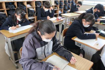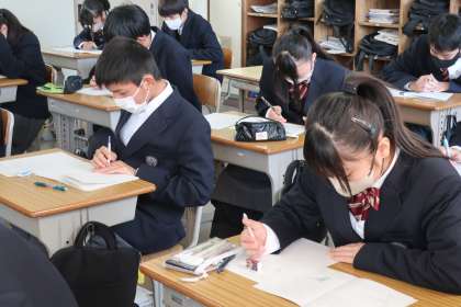 学習診断テストに向け、本番と同じ集中力で対策プリントに取り組んでいました。