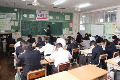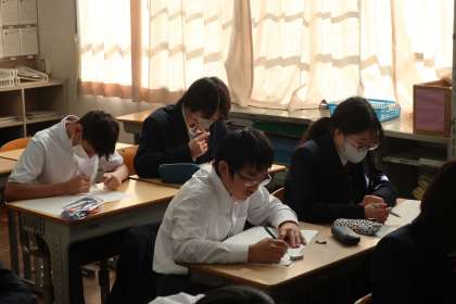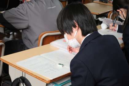学習診断テストに向け、本番と同じ集中力で対策プリントに取り組んでいました。