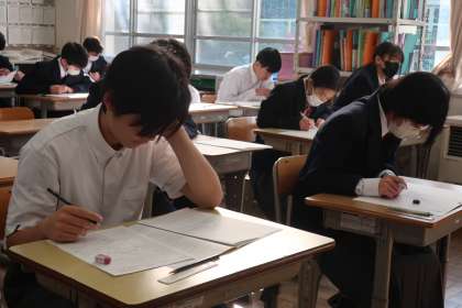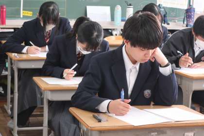 一年間のまとめのテストとして、授業で繰り返し対策プリントに取り組んできたこと、家庭でもしっかり勉強してきたことを出し切ってほしいと思います。