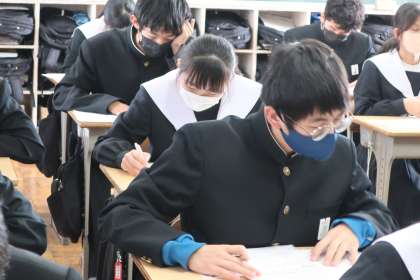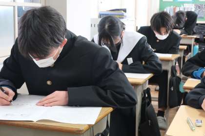 中学校での学習の総復習と受験の対策のため、まとめのプリントに取り組んでいました。