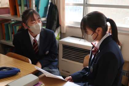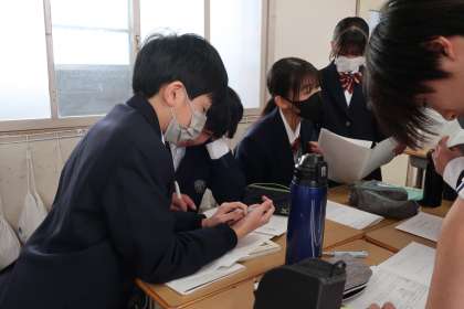 昨日実施された学習診断テストの自身の解答を見直し、解き方に問題がなかったか、正確でさらに早く解ける方法はないかなど、仲間同士で確認し合っていました。