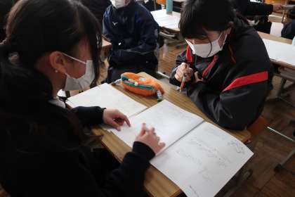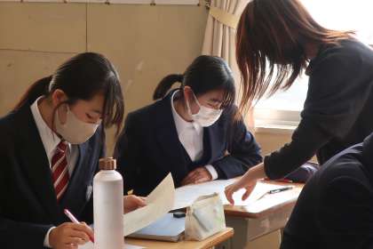 昨日実施された学習診断テストの自身の解答と解説を見比べ、解き方に問題がなかったか、正確でさらに早く解ける方法はないかなどを確認していました。