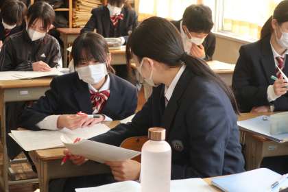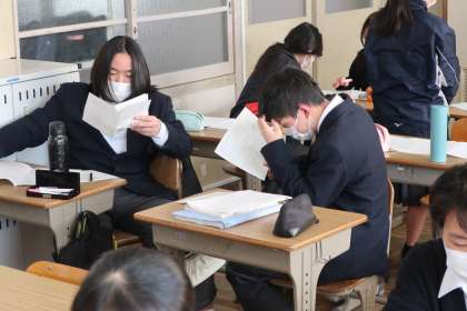 昨日実施された学習診断テストの自身の解答と解説を見比べ、解き方に問題がなかったか、正確でさらに早く解ける方法はないかなどを確認していました。