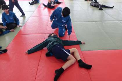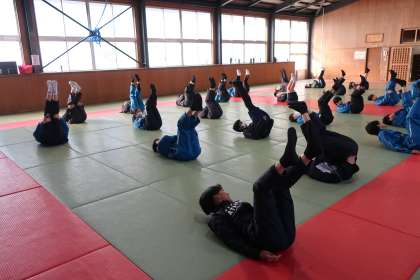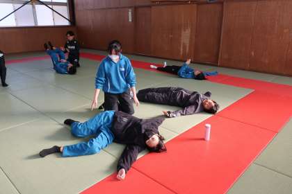 柔道の学習で一番大切な受け身の基本動作について練習していました。