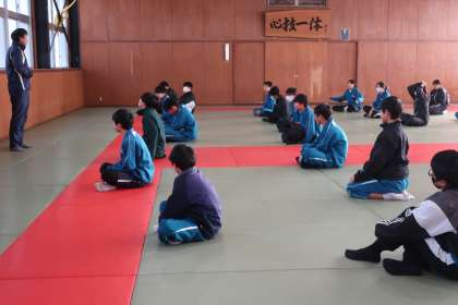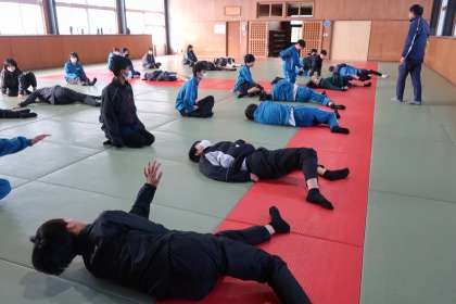 柔道の学習で一番大切な受け身の基本動作について練習していました。
