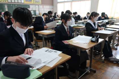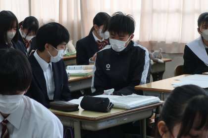 昨日実施された学習診断テストの問題を、仲間の力も借りながら、もう一度解き直していました。