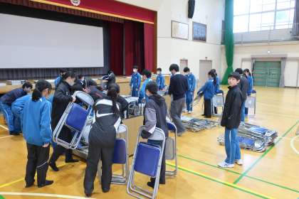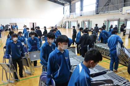 入学説明会が終わると、体育館で部活動を行う生徒や有志たちが集まり、手際よく片付けを行ってくれました。