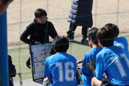 5校で戦った予選リーグを2位で通過し、8チーム出場の決勝トーナメントに参戦。惜しくも敗れてしまいましたが、これまで熱心に指導してくださっている地域指導者の方から、「粘り強く戦えるチームに成長してきました。これからが楽しみです!」と期待高まる言葉をいただきました。