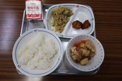 ピリット厚揚げ、棒々鶏(バンバンジー)、大学いも、ごはん、牛乳 でした。