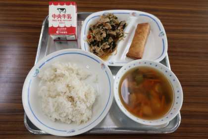 2/4 今日の給食 公開日 2025/02/04 更新日 2025/02/04 特別活動 今日の献立は ————— 五目スープ、ビビンバ丼(麦ごはん)、春巻き、牛乳 でした。 *エネルギー:825kcal たんぱく質:28.7g