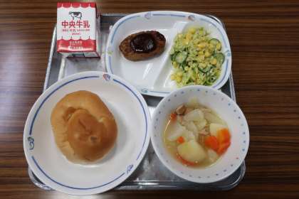 2/12 今日の給食 公開日 2025/02/12 更新日 2025/02/12 特別活動 今日の献立は ————— ポトフ、コーンサラダ、ハンバーグ、りんごパン、牛乳 でした。 *エネルギー:831kcal たんぱく質:29.5g