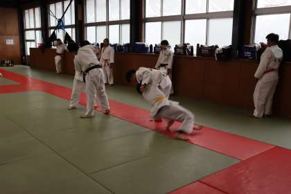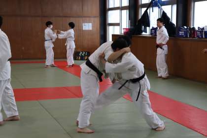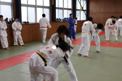高校に進学した卒業生に加え、高校入学後も柔道を継続する意思のある3年生も練習に参加していました。先輩の強さを改めて感じているようでした。