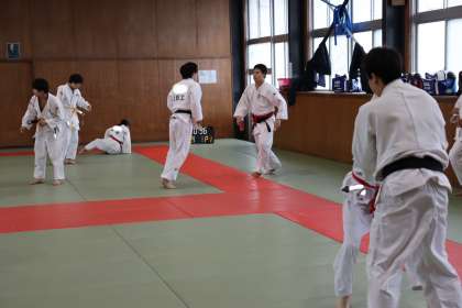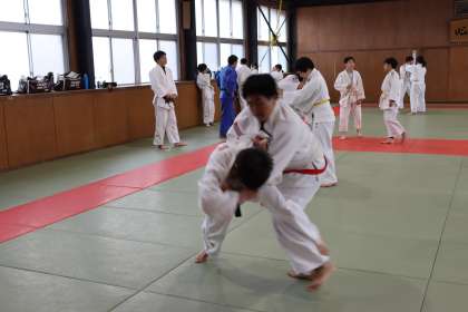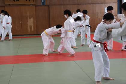 高校に進学した卒業生に加え、高校入学後も柔道を継続する意思のある3年生も練習に参加していました。先輩の強さを改めて感じているようでした。