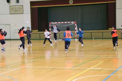 写真は、女子ハンドボール部の活動の様子です。