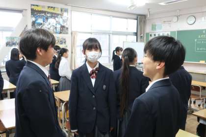 厳しい寒さの中登校してきた生徒たち。頬を真っ赤に染めながらも、仲間とたくさん会話しています。話題となった内容を深掘りしながら、どんどん話が盛り上がっているように感じました。