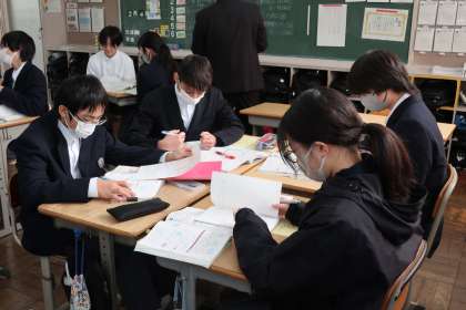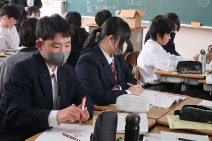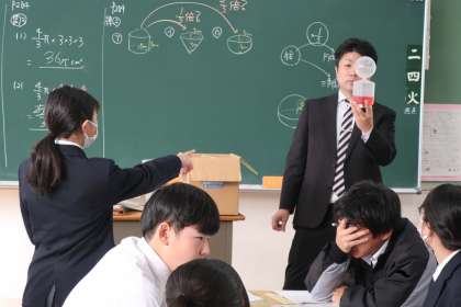 立体の体積比についての学習で、答えの導き出し方を仲間に伝える場面が多くありました。