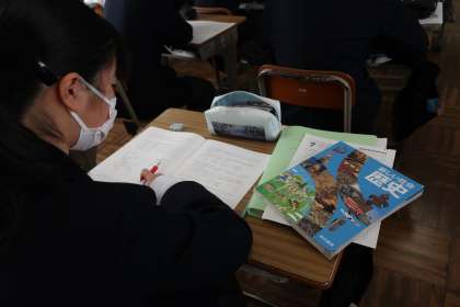 先日行われた学習診断テストの解説がなされ、解き直しにも取り組んでいました。