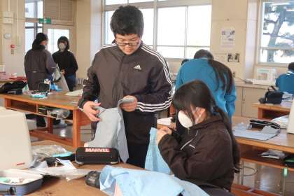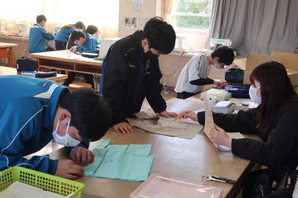 ミシンを使ってのトートバッグづくりに取り組んでいました。実際に使えるよう、細かな部分まで気をつかって作っていました。
