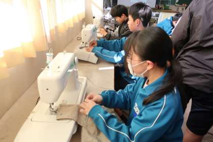 ミシンを使ってのトートバッグづくりに取り組んでいました。実際に使えるよう、細かな部分まで気をつかって作っていました。