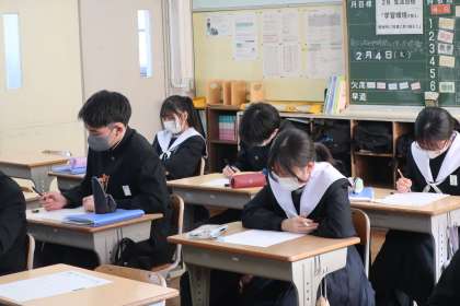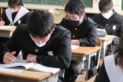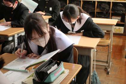 「グラフの読み取り」に特化した入試対策のプリントに取り組んでいました。