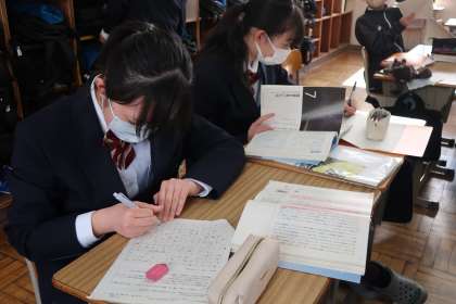 説明文をもとに「要約のまとめ方」学んでいました。筆者の主張まとめるため、段落の中心となる文やキーワードを必死に探し、まとめ上げていました。