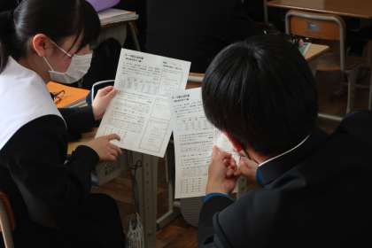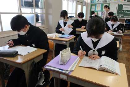 2/5 3-1 テーマ別入試対策 4 公開日 2025/02/05 更新日 2025/02/05 各学年から 3年1組の社会の授業の様子です。 「テーマ別入試対策」と題し、今回は「表を正しく読み取ろう」をテーマに演習問題に取り組んでいました。