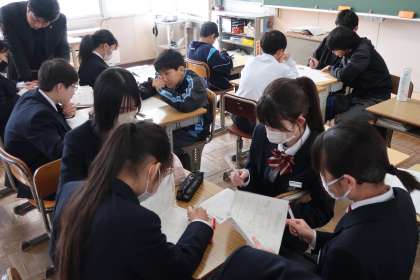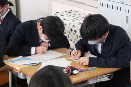 これまで学習してきた立体図形の演習問題に取り組み、定期テストに向けての実力アップを図っていました。