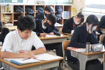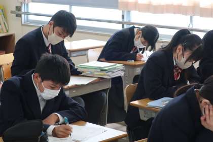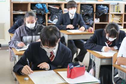 「図形の性質と証明」の単元のまとめのプリントに取り組んでいました。