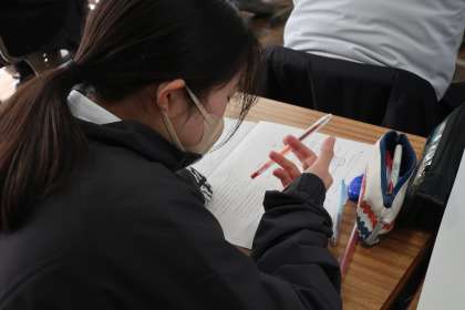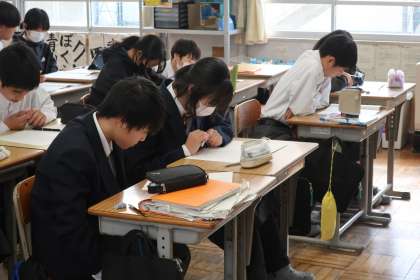学習診断テストの問題を解き直し、正解にたどりつく考え方の解説が行われていました。