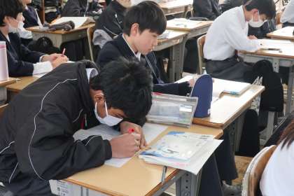 学習診断テストの問題を解き直し、正解にたどりつく考え方の解説が行われていました。