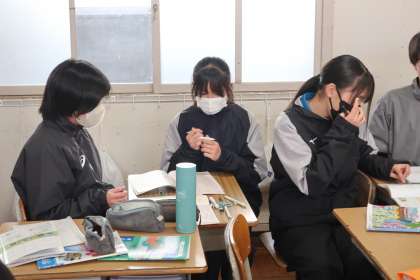 週明けに控えた定期テストに向けて、各自が不安に思っている部分の学習に取り組んでいました。仲間と一緒だと勉強もはかどるようです。