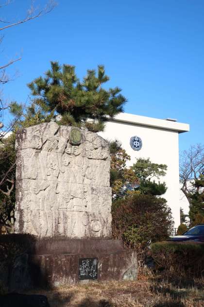 正門を入ってすぐの築山に開校30周年を記念するオブジェがあります。これまでは前方に植えられたツツジなどの木が大きくなってきたため、全体の様子が分かりにくくなっていました。そこで、公務手さんと校務支援員さんが整備を開始。おかげで前方がスッキリし、約50年(令和8年、開校80周年を迎えます)の時を経て、全体像が復活しました。