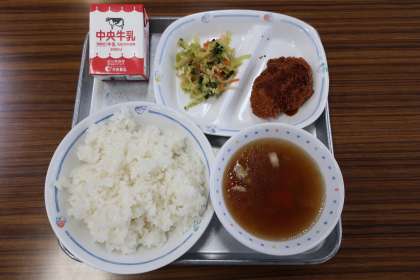 2/17 今日の給食 公開日 2025/02/17 更新日 2025/02/17 特別活動 今日の献立は ————— かしわ汁、アーモンドあえ、ほっけフライ、ごはん、牛乳 でした。 *エネルギー:802kcal たんぱく質:29.8g