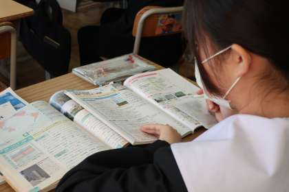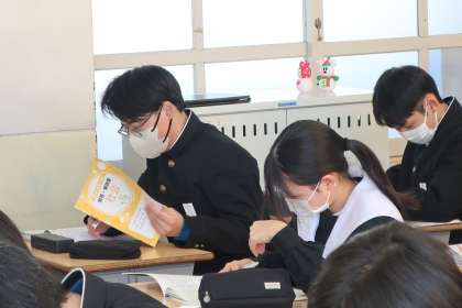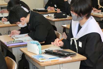 中学校で学習した地理・歴史・公民の各分野の総復習に取り組んでいました。