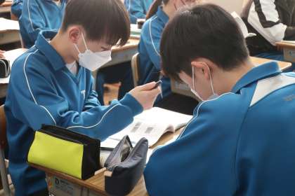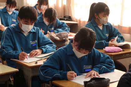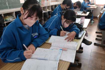 定期テストに向け、これまで学習してきた内容をテキストやプリントで確認しながら勉強していました。