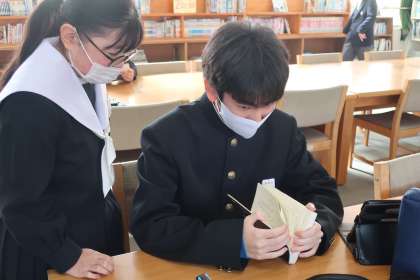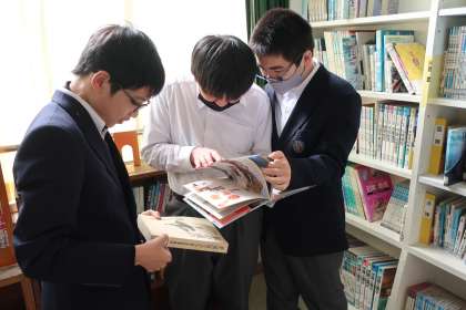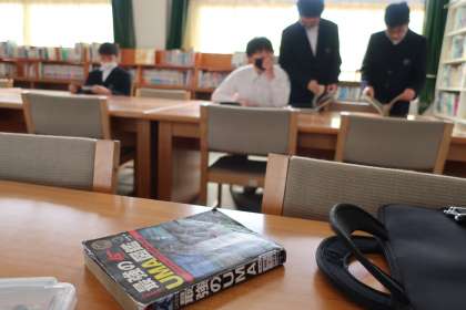 今回は、図書室での学習です。前半は、名古屋市科学館への校外学習に向けての調べ学習、後半は、各自が興味をもった本を仲間に紹介していました。