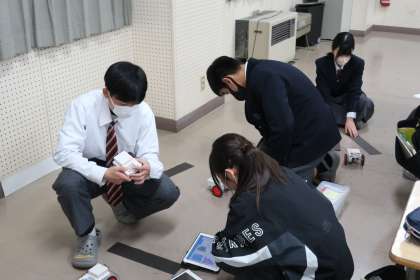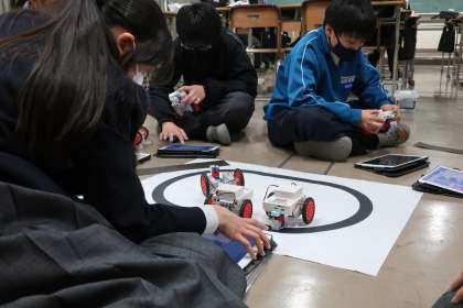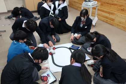 プログラミング学習で、「情報の制御・計測」について、実際にデータを並べ、プログラムどおりに動作が行われるかを確認していました。