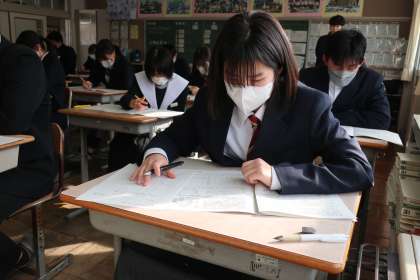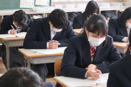 今年度最終の定期テスト。3年生の入試の雰囲気も感じ取り、全力で臨んでいる様子が伝わってきました。