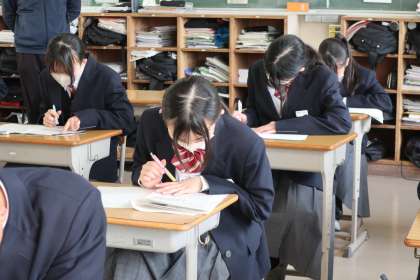 今年度最終の定期テスト。3年生の入試の雰囲気も感じ取り、全力で臨んでいる様子が伝わってきました。