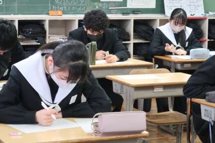 2/12 3-1 確認テストに向けて 2 公開日 2025/02/12 更新日 2025/02/12 各学年から 3年1組の数学の授業の様子です。 明後日に実施される義務教育最後の「確認テスト」に向け、図形問題や文章問題など正確に早く正解を導き出せるよう、たくさんの問題にあたっていました。