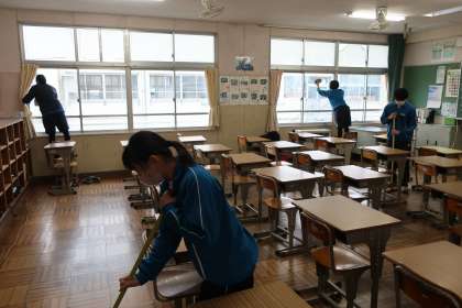辛いはずの作業も笑顔で取り組む3年生の様子は、「立つ鳥 あとを濁さず」を超え、「立つ鳥 心を残す」といったところです。
