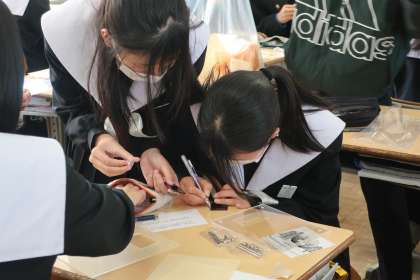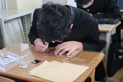 2/13 3-3 いよいよ完成! 3 公開日 2025/02/13 更新日 2025/02/13 各学年から 3年3組の美術の授業の様子です。 中学校での印象的な場面をイラストにし、点描で仕上げた作品を万年カレンダーにはめ込んでいきます。中学校で作る最後の作品もいよいよ完成です。
