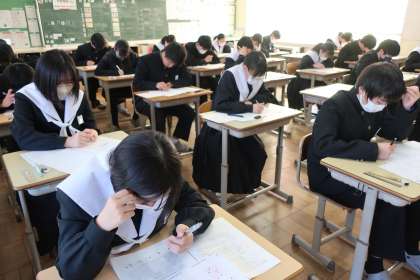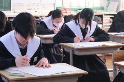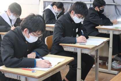 確認テスト(義務教育最後のテスト) 3年2組の様子です。