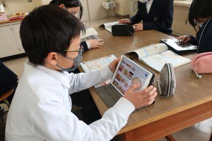 「情報を活用した上手な購入」についての学習で、「買い手のニーズに合った広告を作ろう」をテーマに、プレゼン用の資料の作成に取り組み始めていました。