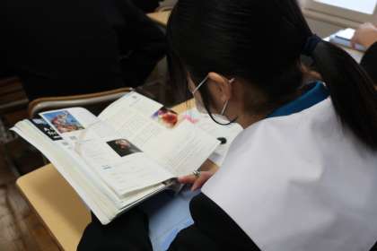 授業で学習した内容をプリントを活用してすぐに復習していました。